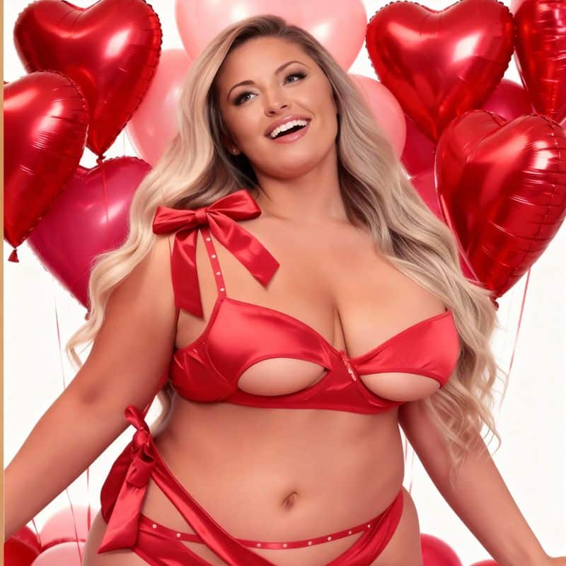 - Série photo « Ma Saint-Valentin avec toi » Photos en lingerie rouge, avec roses, bougies, messages écrits sur le corps (« Be My Valentine »).